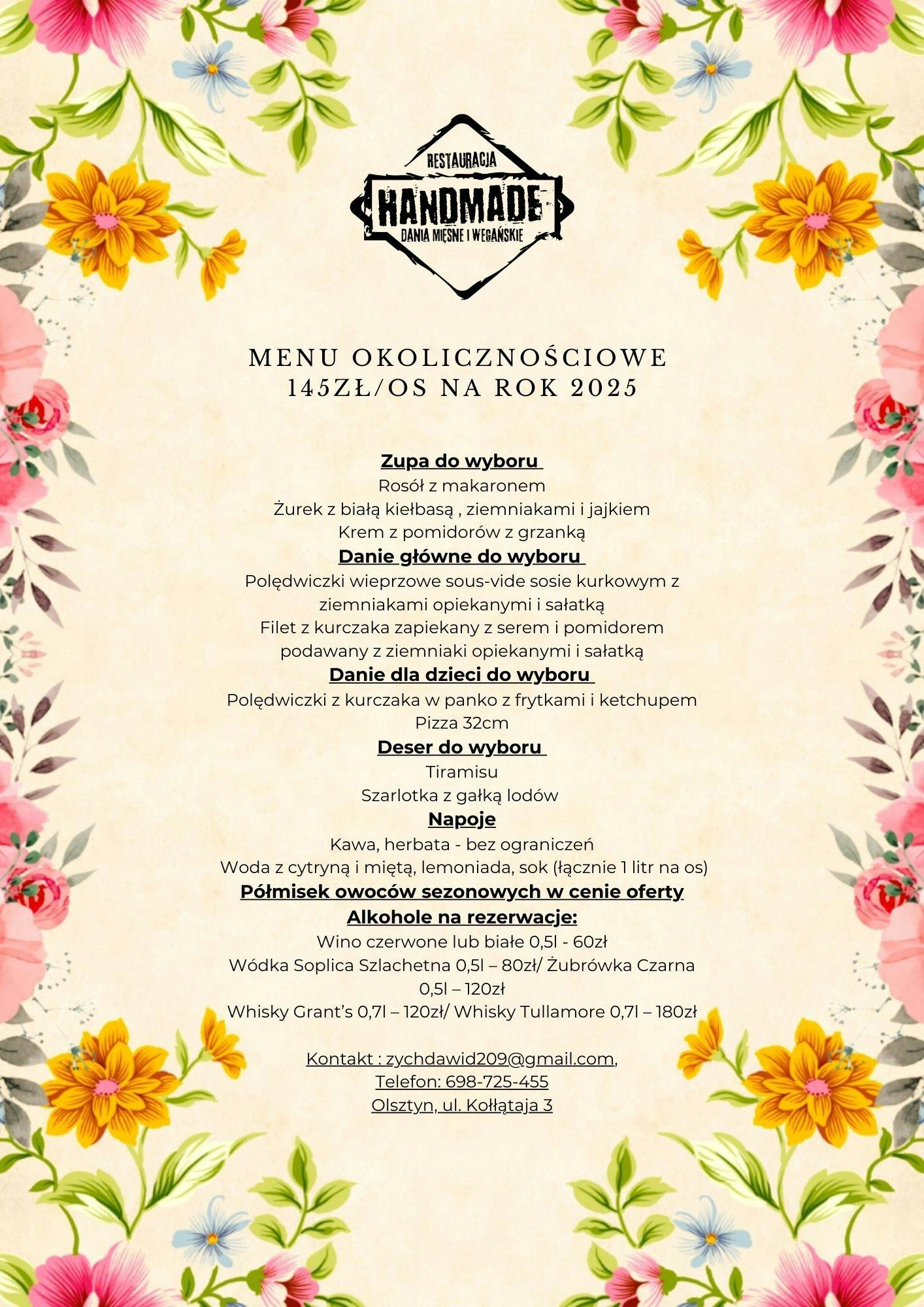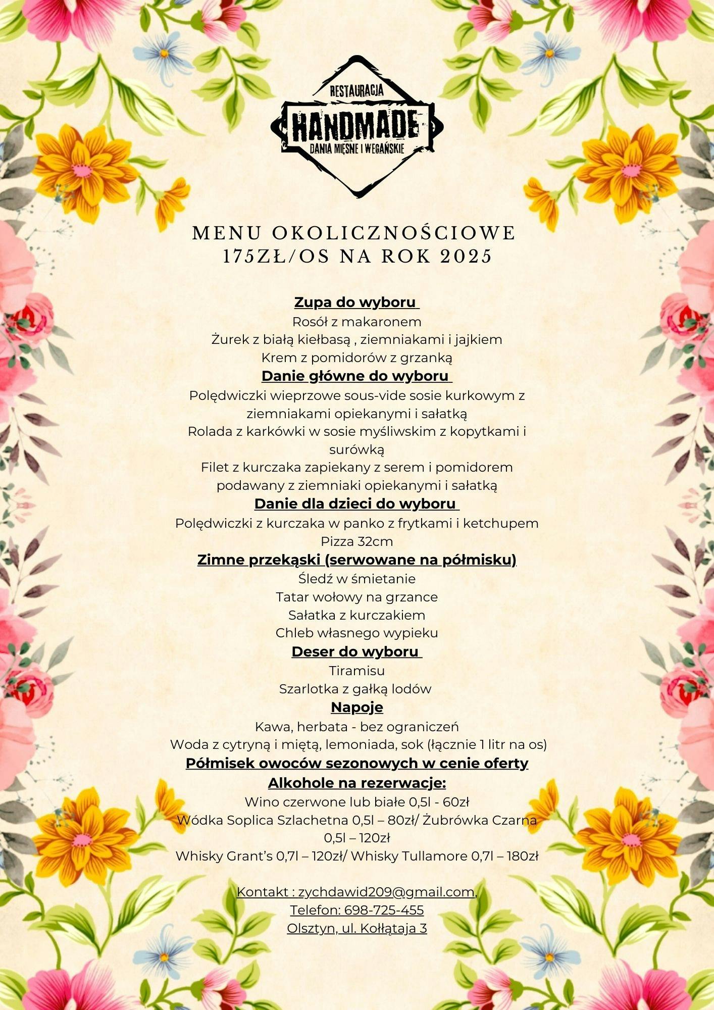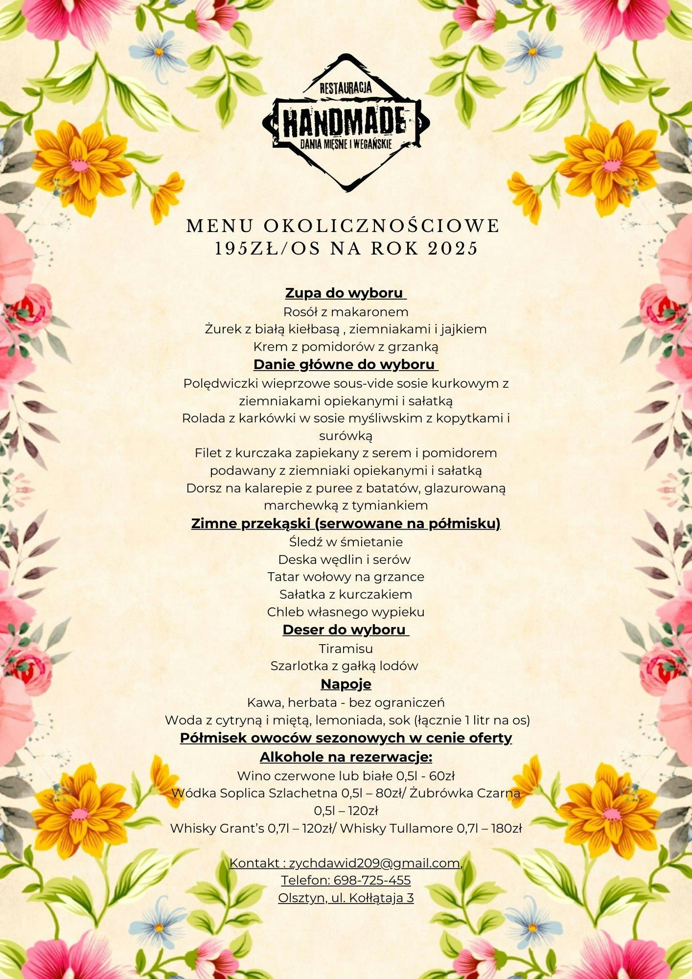 dodatkowe atrakcje kulinarne i aranżacyjne na życzenie.